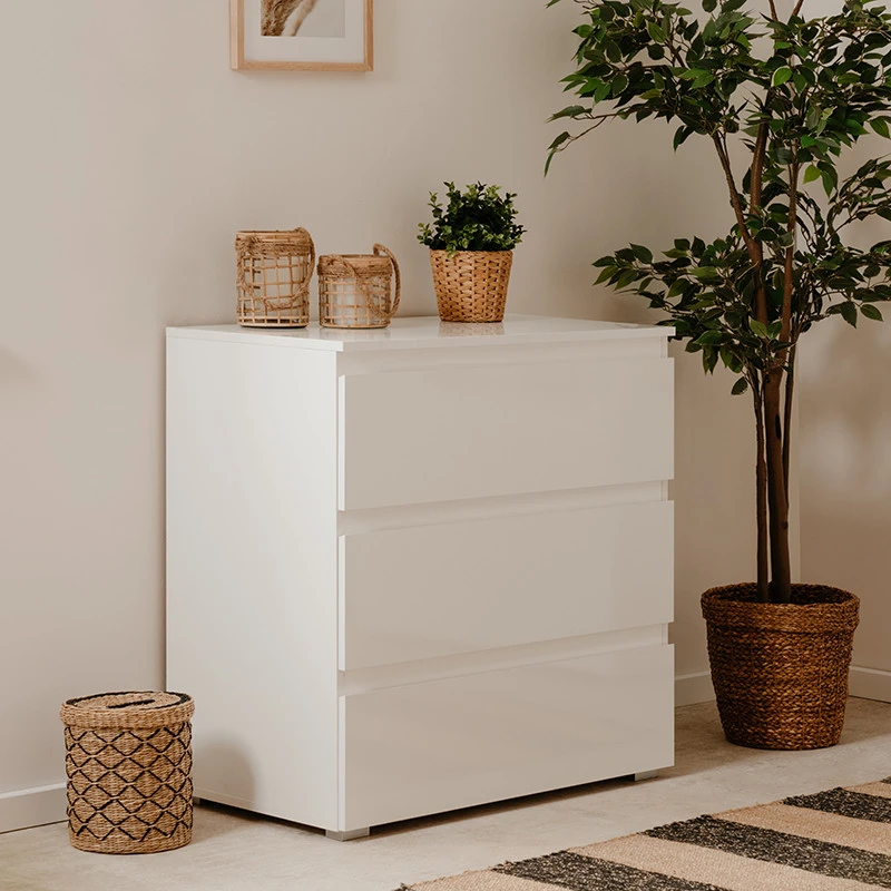 Un indispensable sobre et épuré, découvrez la commode 3 tiroirs 80 cm Capetown blanc.