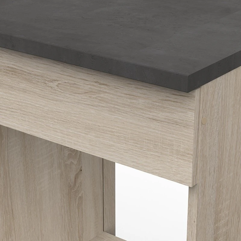 Robuste : le plan de travail mesure 25mm d’épaisseur, le revêtement est 100% mélaminé et résiste à l’eau.