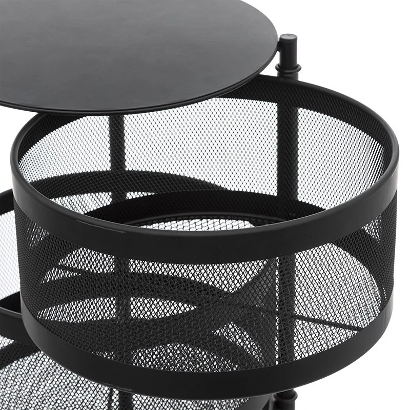 Pratique, esthétique et maniable, découvrez la desserte ronde 4 paniers en métal noir Mayaj de la marque 5Five.