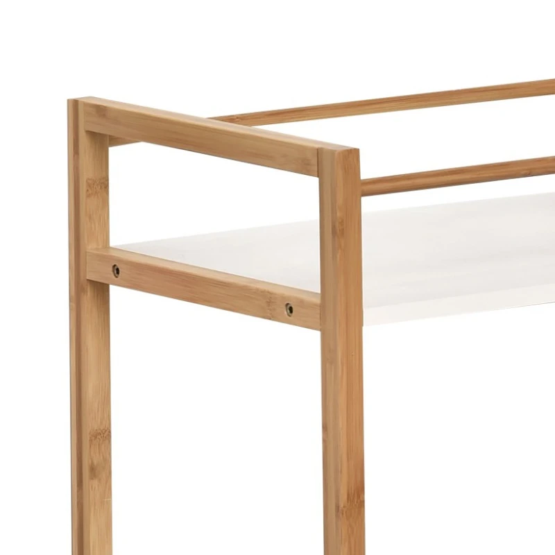 Meuble de salle de bain 3 niveaux structure en bambou. Ce meuble de la collection Nuovo blanc et naturel est conçu pour résister à l’humidité ambiante d’une salle de bain. Idéal pour ranger produits et serviettes de bain…