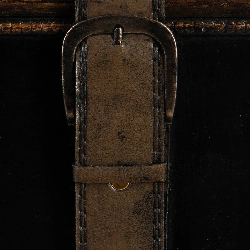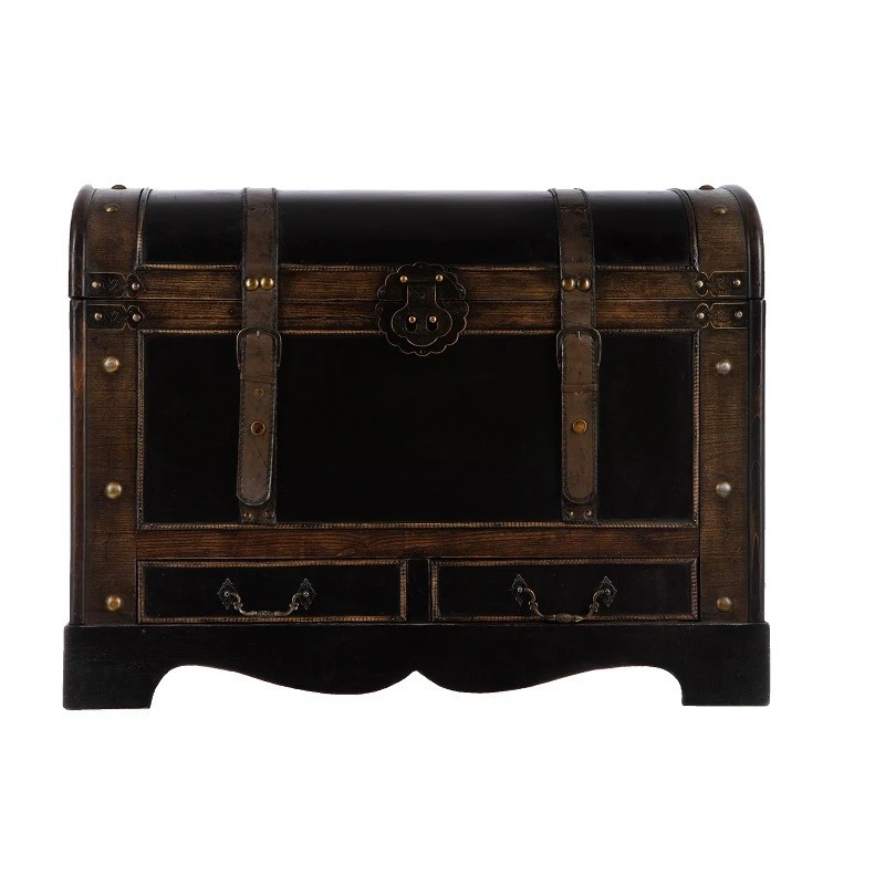 Superbes malles en bois, fermetures par crochets en métal, équipées de sangles façon cuir. Pour ranger et offrir un style éternel à votre intérieur. La grande malle a 2 tiroirs dans le bas. Dimensions des malles 76x47xH58 cm, 66x36xH36 cm et 56x27xJ27 cm. Poignées latérales.