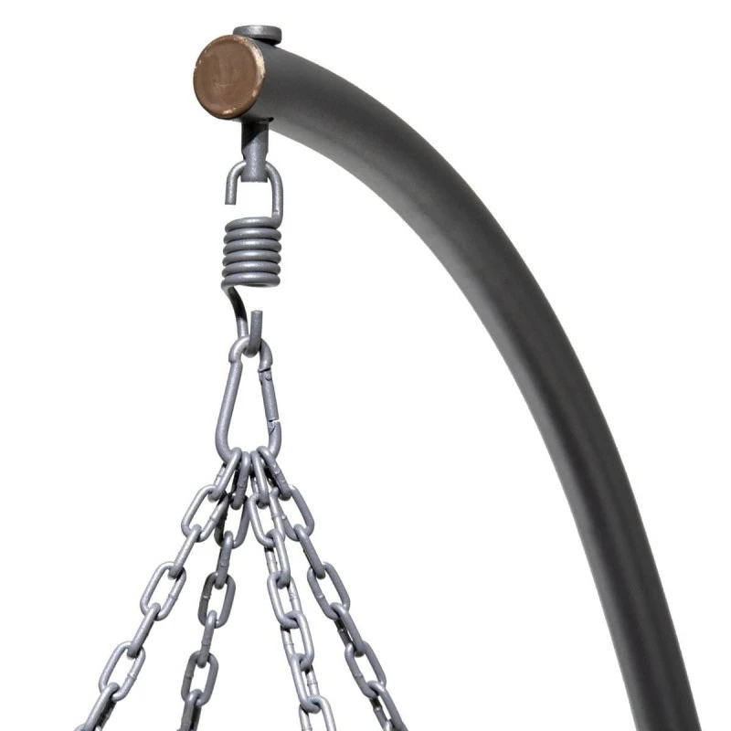 Résistant cet œuf suspendu dispose d’une structure en acier traité époxy antirouille et d’un habillage en résine tressée synthétique.