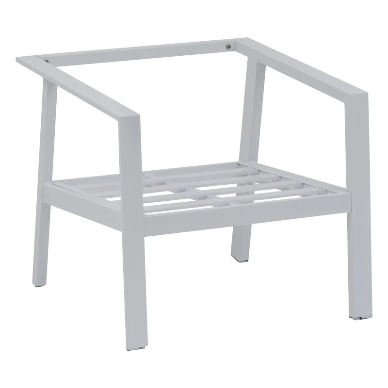 Appréciez le confort et le style du salon de jardin 5 places Pavane de la marque Hespéride en coloris beige ficelle et blanc.