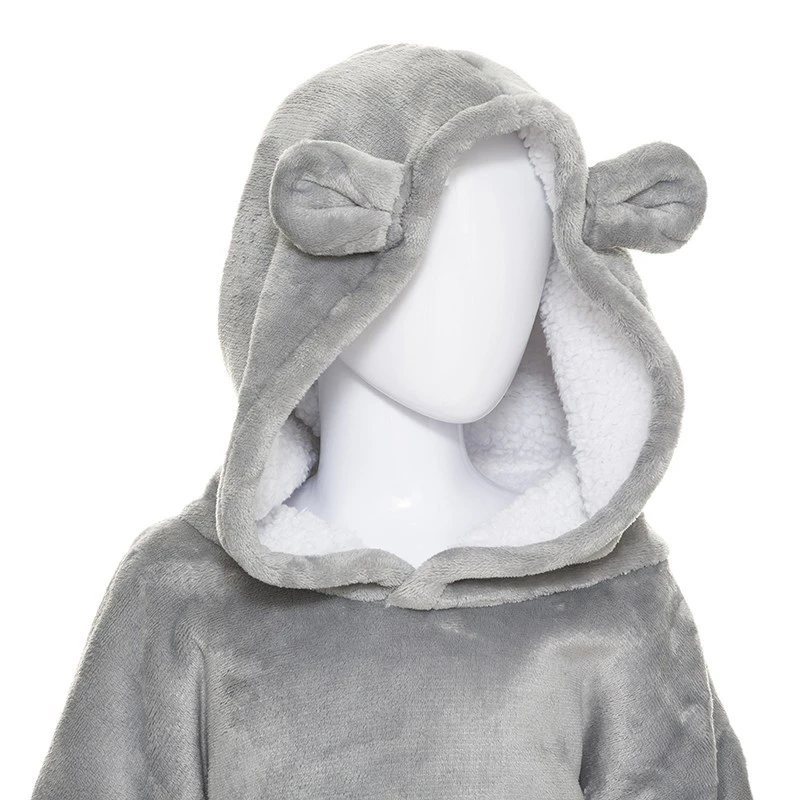 Conception à capuche avec oreilles d’ours, manches longues et grande poche sur le devant.