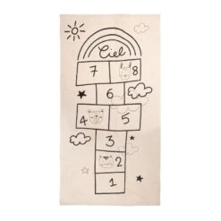 Pour amuser vos enfants tout en décorant leur chambre : le tapis marelle en coloris beige 80 x 150 cm de la marque Atmosphera.